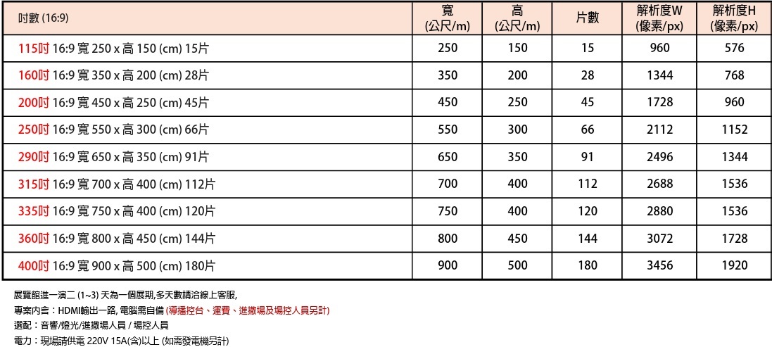 本公司提供各種尺寸電視牆可供選擇,可參考圖片內的規格 歡迎來電洽詢詳談 02 2723-2225 #56